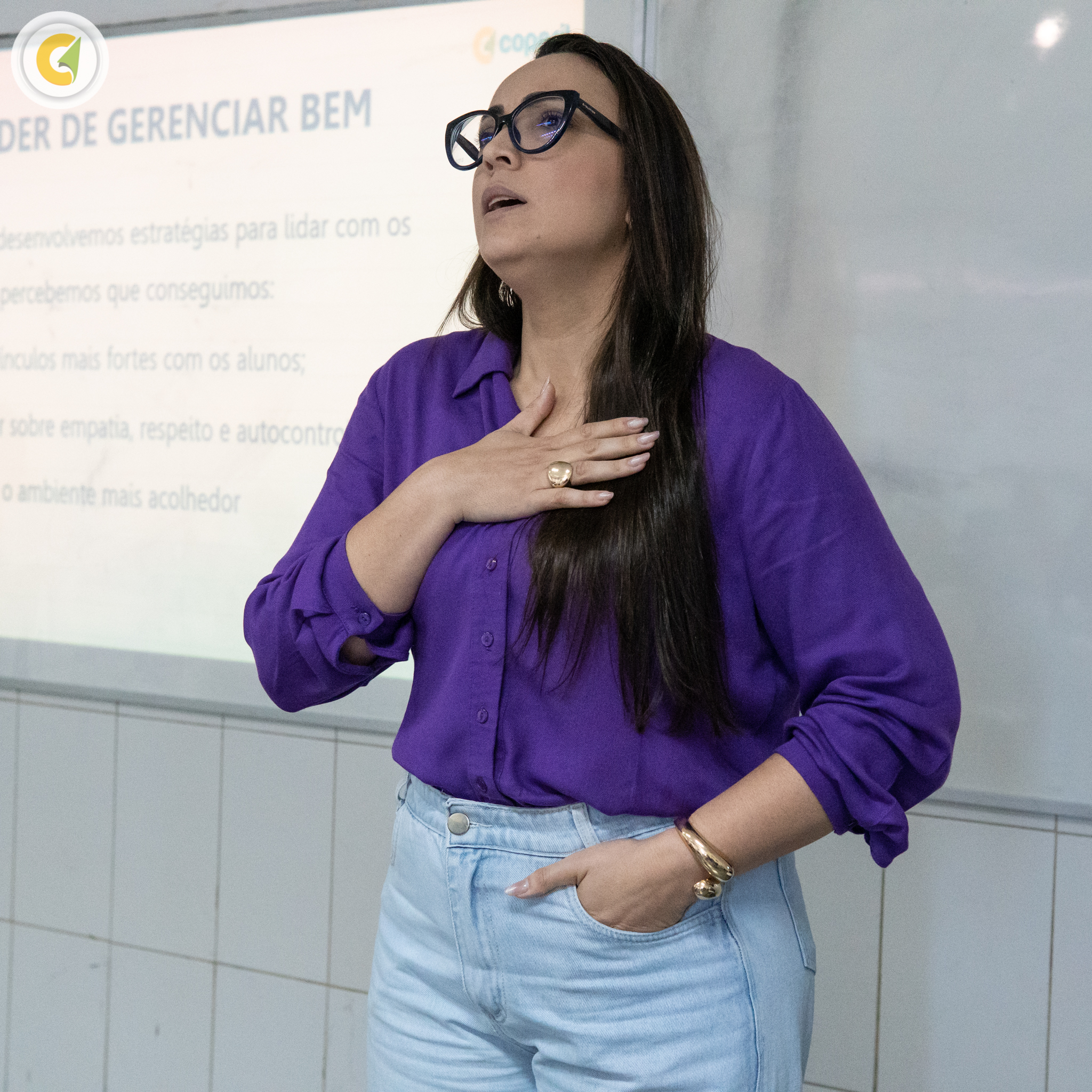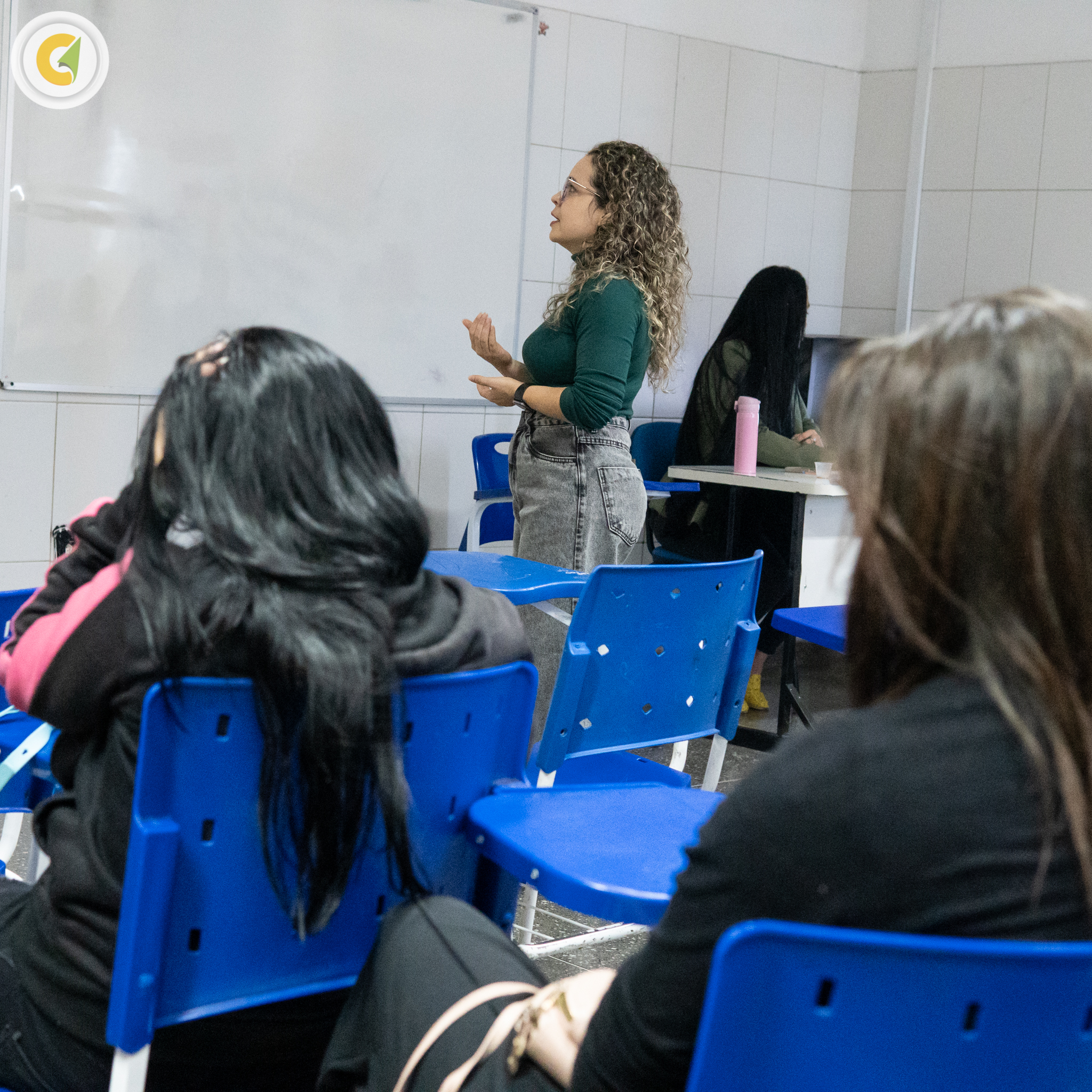 Logo após, foi a vez da coordenadora do Ensino Médio, Suellen Barreto conduzir o tema “Gestão de conflitos no estágio pedagógico”, proporcionando um espaço de diálogo sobre situações cotidianas da escola e como lidar com elas de forma ética, responsável e, principalmente, cooperativa.